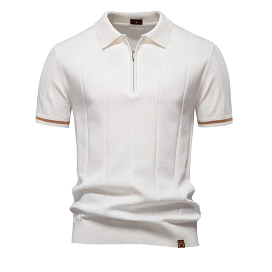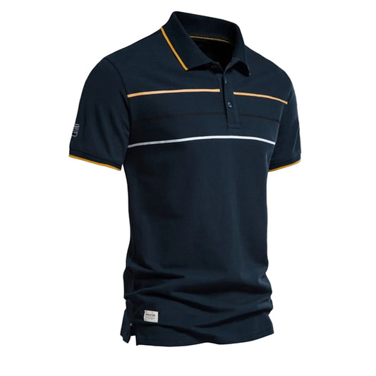 Men’s Cotton Polo – Short Sleeve, Striped with Contrast, Social