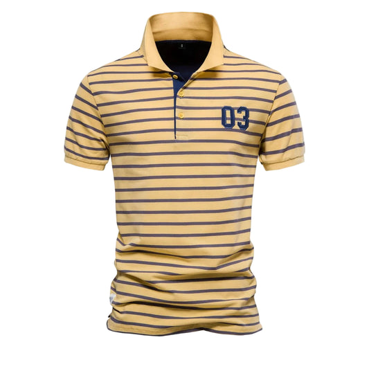 Men’s Cotton Polo – Striped with Embroidery, Short Sleeve, Casual