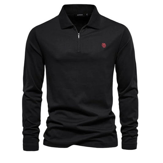 Men’s Long Sleeve Polo – 100% Cotton, Solid, Casual