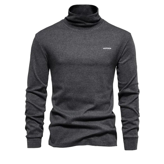 Men’s Solid T-Shirt – Long Sleeve, Turtleneck, Basic for Autumn/Winter