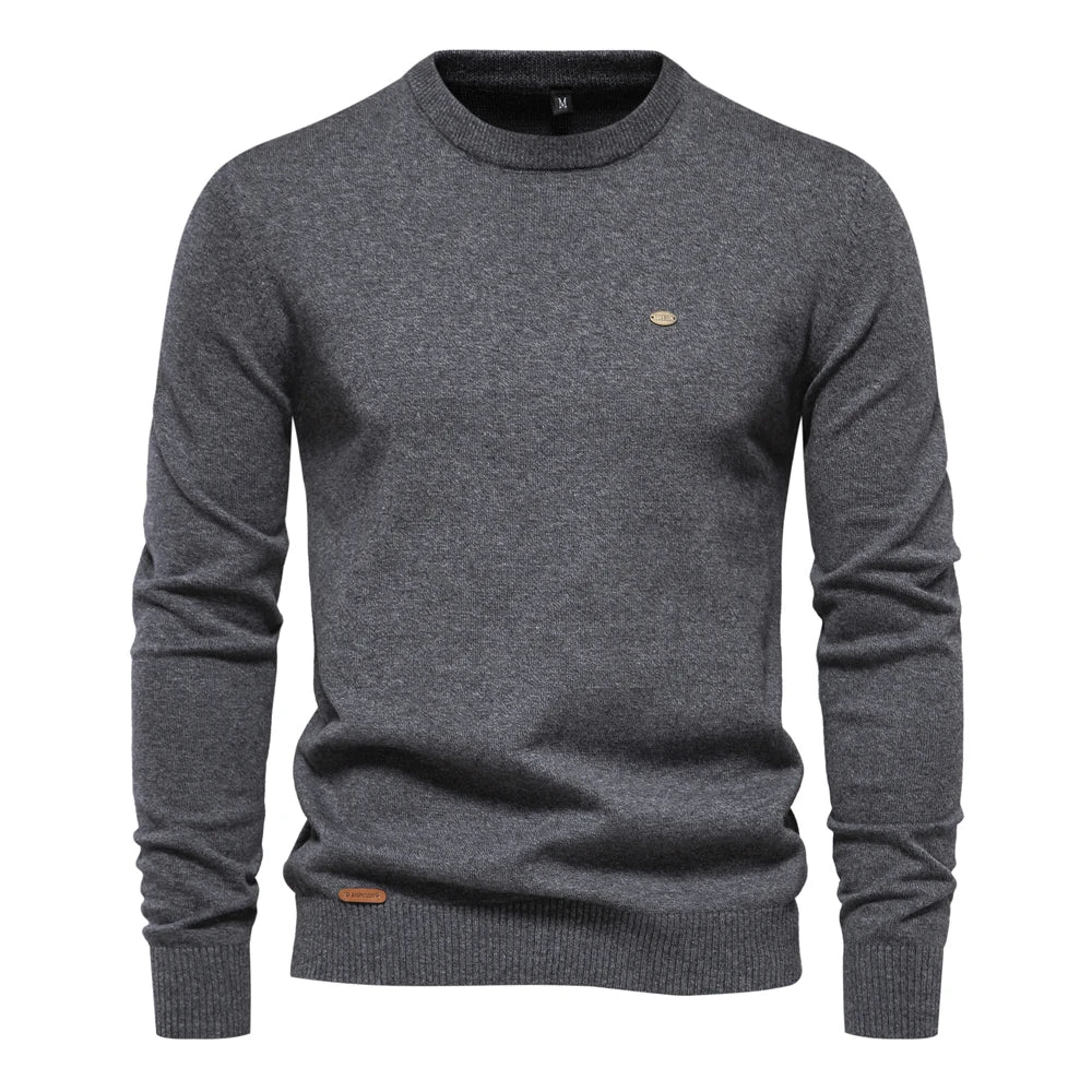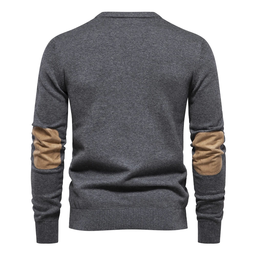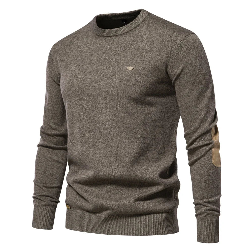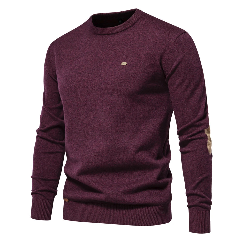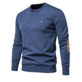 Men’s Autumn 2023 Cotton Sweater – O-Neck, Patchwork Sleeves, Solid, Warm
