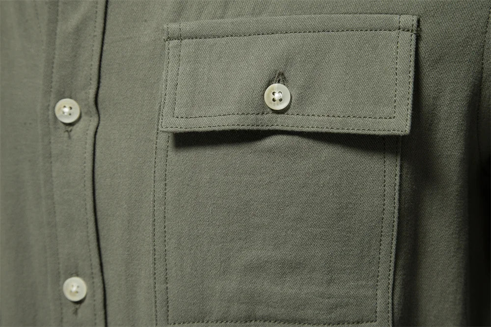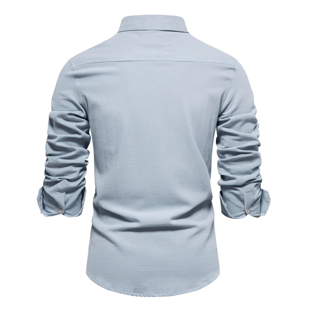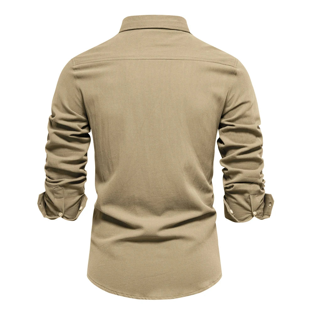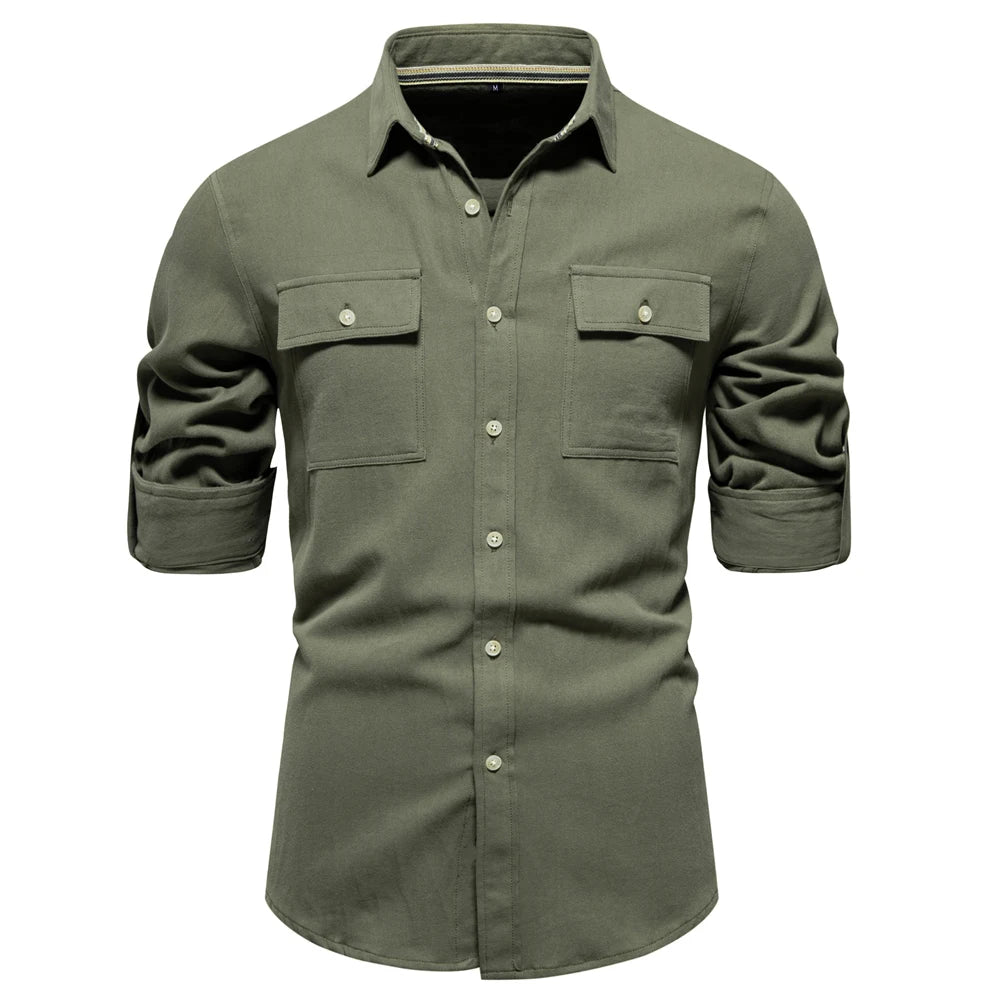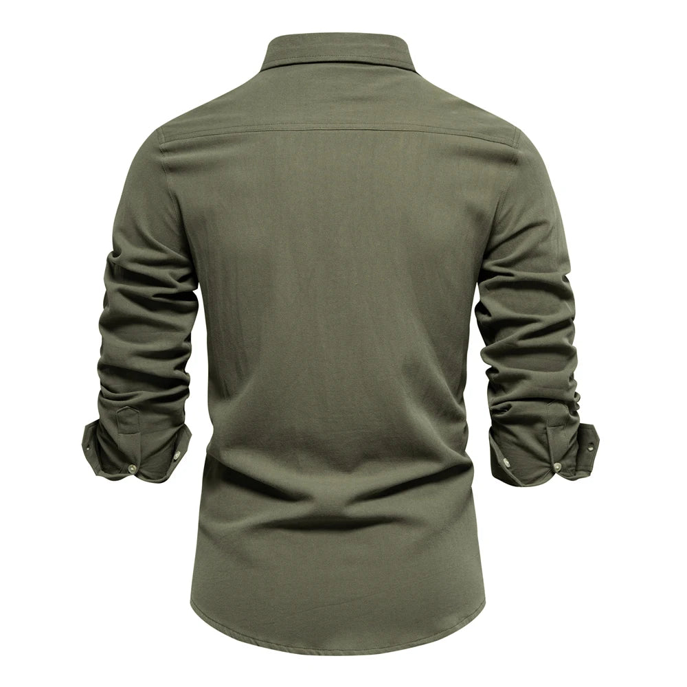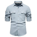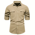 Men’s 100% Cotton Shirt – Solid, Long Sleeve with Double Pockets