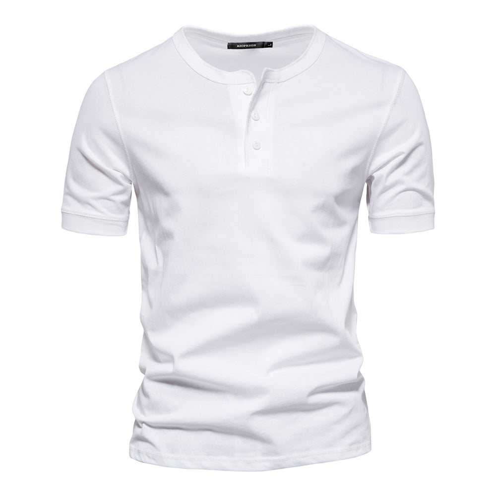 Men’s 100% Cotton T-Shirt – Henley Collar, Casual, and High Quality