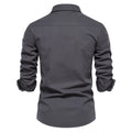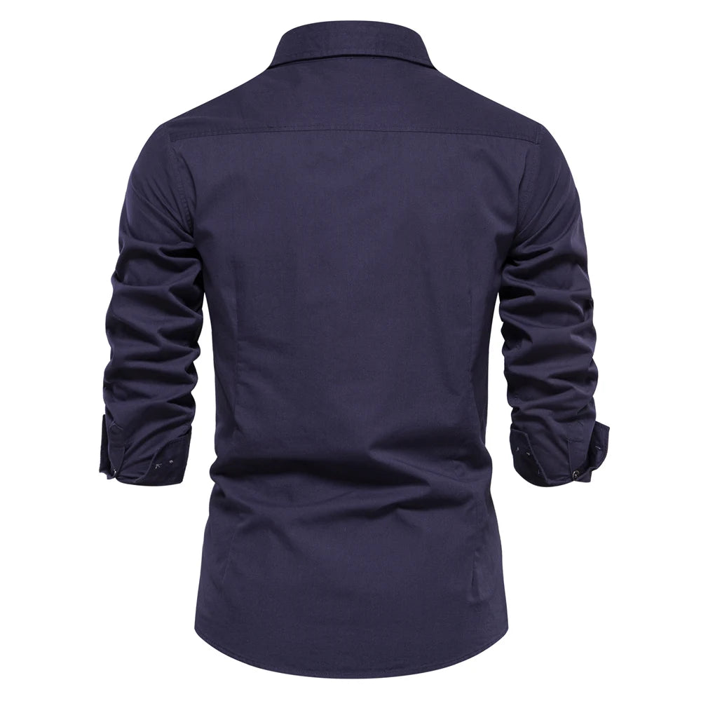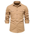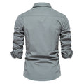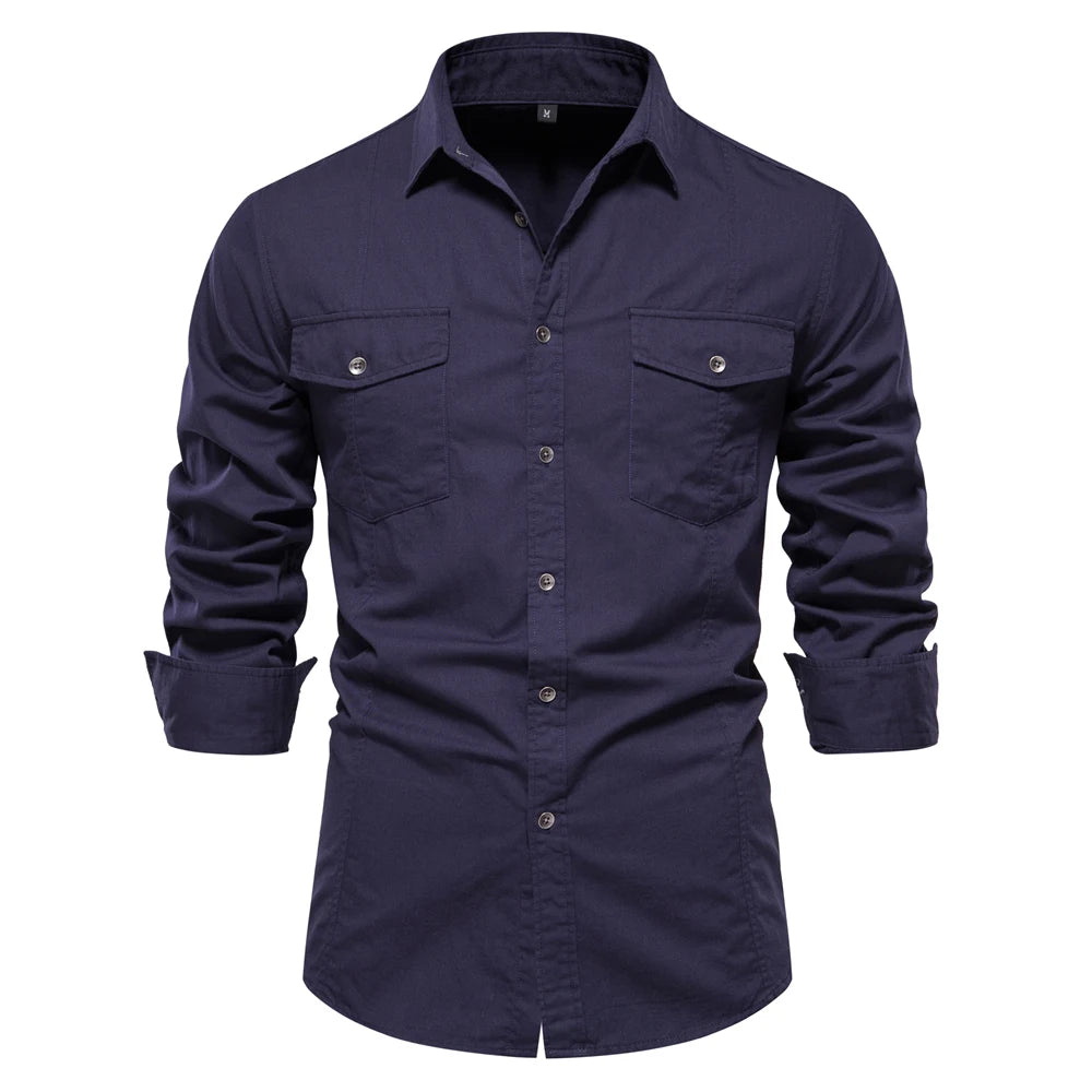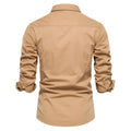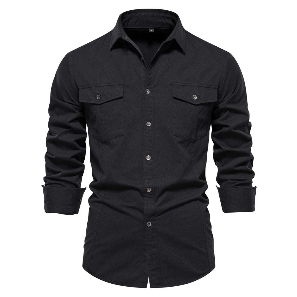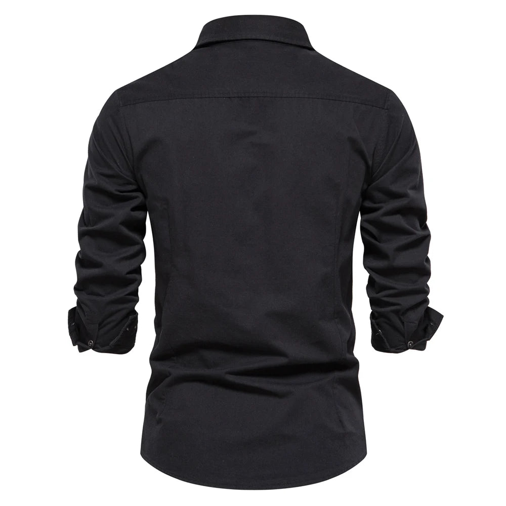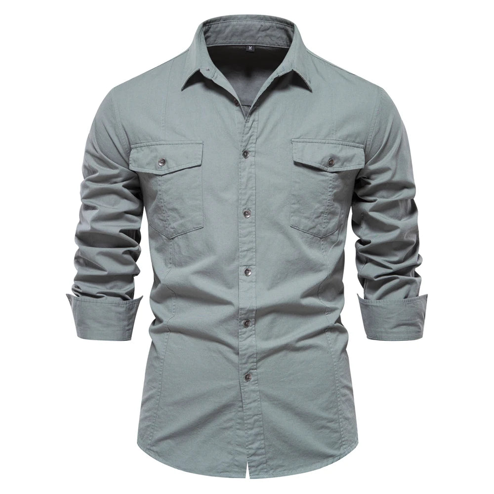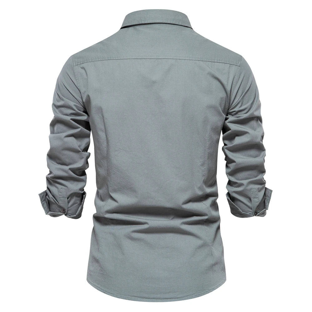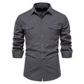 Men’s Military-Style Shirt 2023 – 100% Cotton, Solid, Slim, Long Sleeve