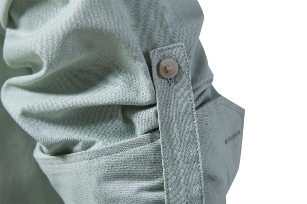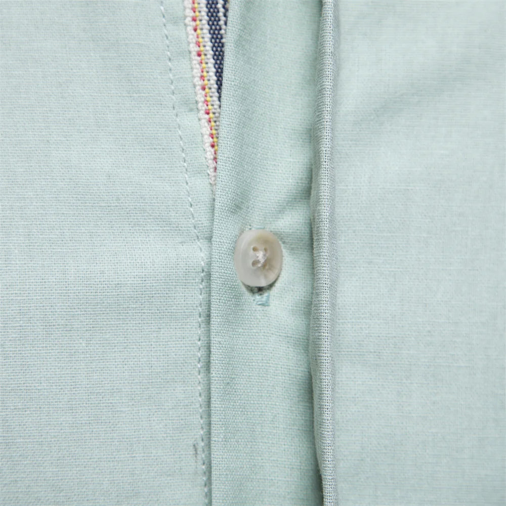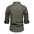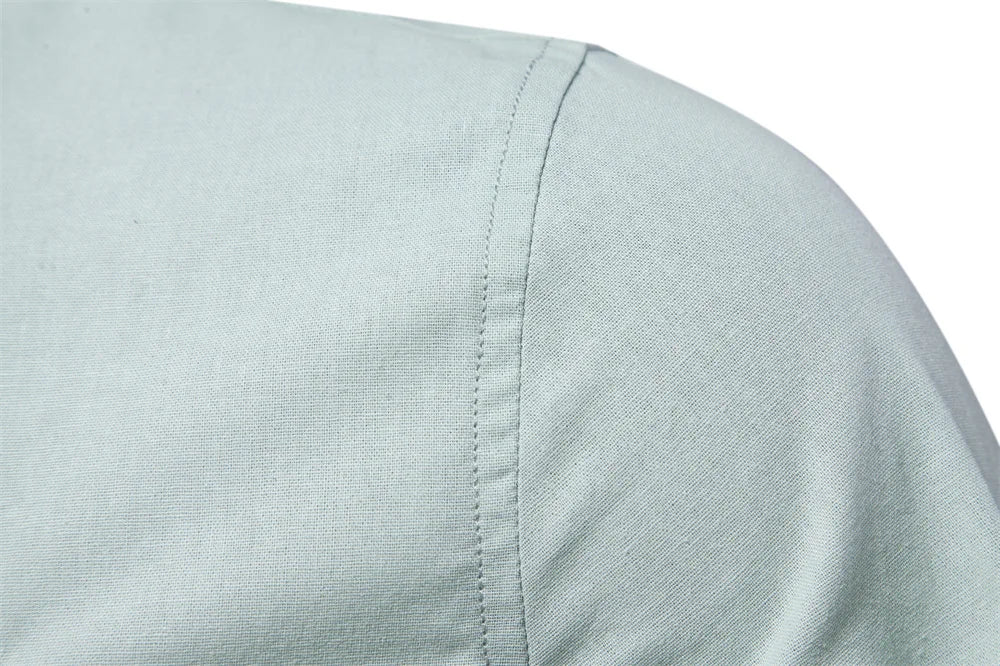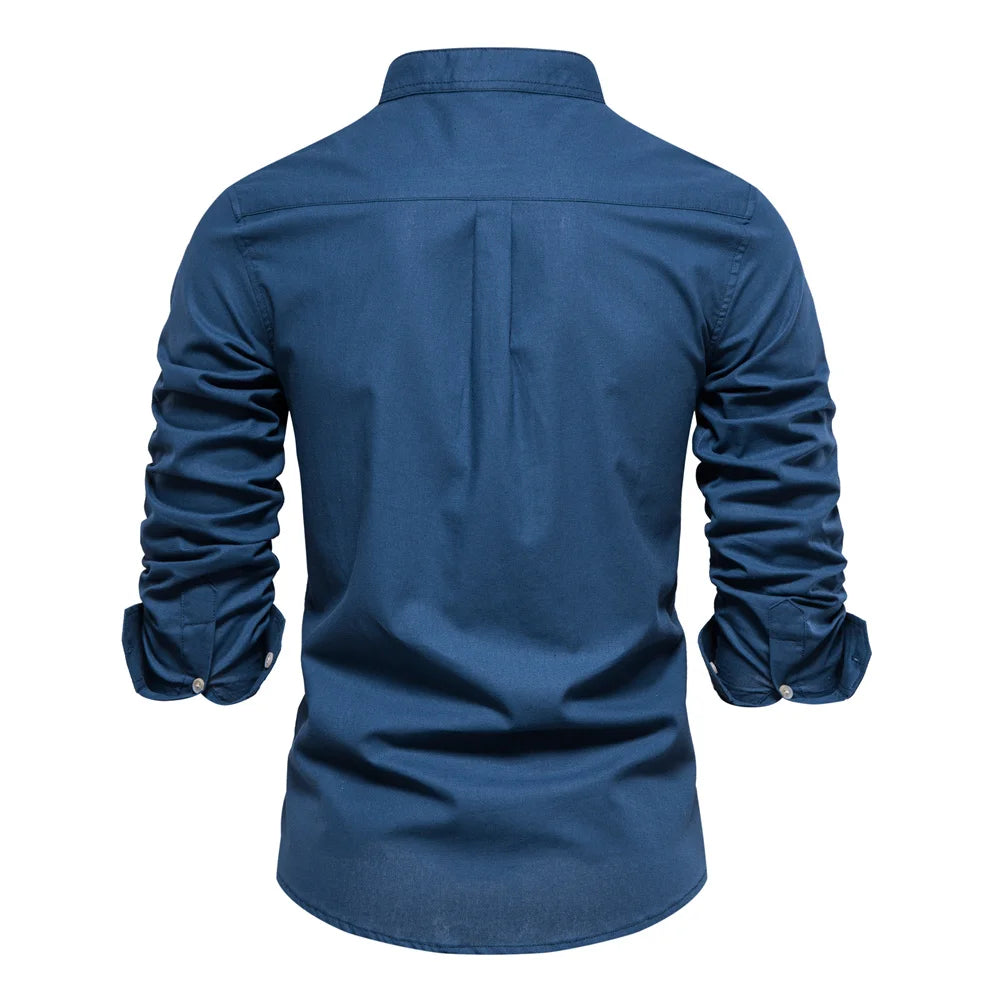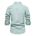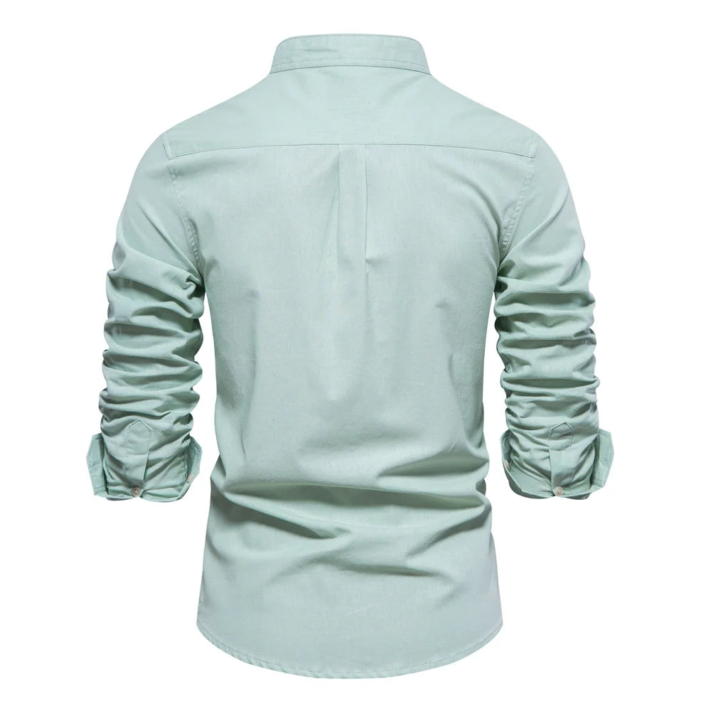 Men’s Solid Shirt – 100% Cotton, Stand Collar, Long Sleeve, Casual