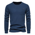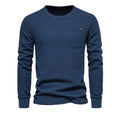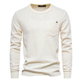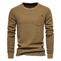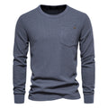 Men’s Waffle Cotton Long Sleeve Tee – Solid, Pocketed, Breathable Autumn Basic
