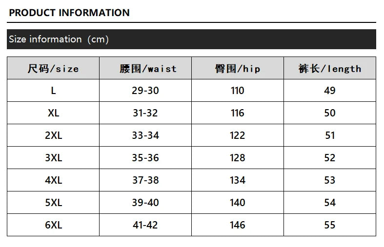 size_info: {"sizeInfoList":[{"length":{"cm":"29-30","inch":"11.42-11.81"},"size":"L Elastic Waist","vid":-2},{"length":{"cm":"31-32","inch":"12.20-12.60"},"size":"XL Elastic Waist","vid":-3},{"length":{"cm":"33-34","inch":"12.99-13.39"},"size":"XXL Elastic Waist","vid":-4},{"length":{"cm":"35-36","inch":"13.78-14.17"},"size":"XXXL Elastic Waist","vid":-5},{"length":{"cm":"37-38","inch":"14.57-14.96"},"size":"4XL Elastic Waist","vid":-6},{"length":{"cm":"39-40","inch":"15.35-15.75"},"size":"5XL Elastic Waist","vid":-7},{"length":{"cm":"41-42","inch":"16.14-16.54"},"size":"6XL Elastic Waist","vid":-27}]}